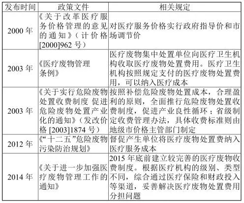 1醫(yī)療廢物處置收費政策發(fā)展歷程