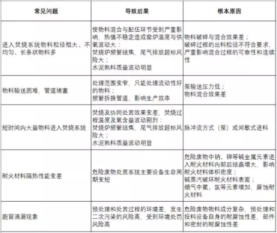 焚燒爐及水泥窯協(xié)同處置線常見(jiàn)問(wèn)題包括: