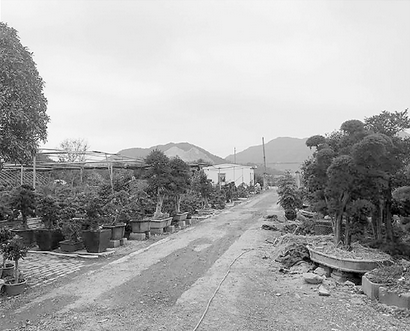 路橋峰江街道的亭嶼村和山后許村之間,通過一條花卉路連接。這段近兩公里的路段,兩側(cè)分布的都是大大小小的苗木園。