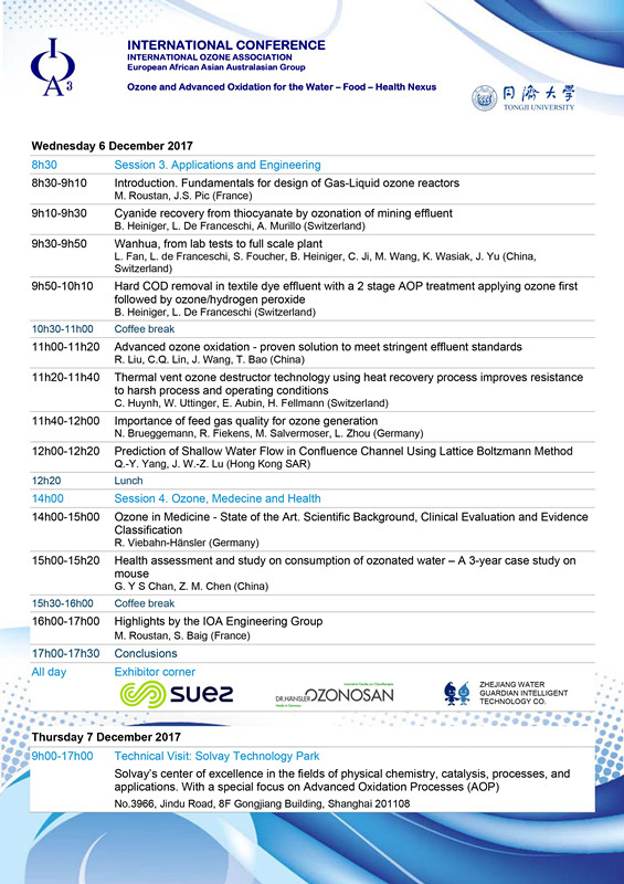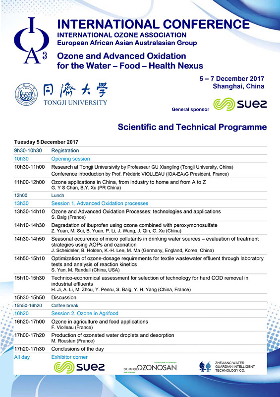 由國際臭氧協會(International Ozone Association European African Asian Australasian Group, IOA-EA3G)和同濟大學聯合舉辦的“臭氧和高級氧化技術:水、食品與健康”國際研討會,將于12月5-7日在上海同濟大學召開,我們誠摯地邀請您撥冗參加。