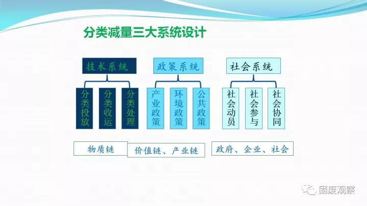 第二部分主要介紹2010年以后上海市推進(jìn)垃圾分類的主要做法。2010年,世博會(huì)臺(tái)灣館給我們展示了一個(gè)讓人震撼的垃圾分類結(jié)果,上海開始火熱的推動(dòng)垃圾分類工作?;舅悸诽岢隽艘?guī)劃引領(lǐng)、政府主導(dǎo),市場(chǎng)運(yùn)作、社會(huì)參與。提出這些思路是因?yàn)榈浆F(xiàn)階段,更加注重到了解決全體系問題對(duì)垃圾分類的重要性。