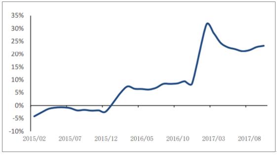 工業(yè)企業(yè)利潤(rùn)總額同比增速自2016年開(kāi)始好轉(zhuǎn),2017年以來(lái)顯著提升