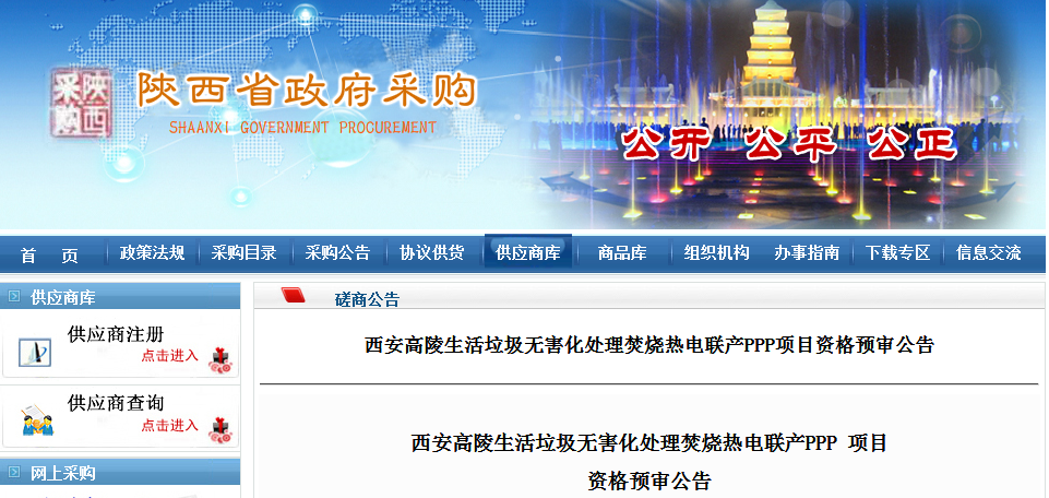 陜西省政府采購網(wǎng)發(fā)布了《西安高陵生活垃圾無害化處理焚燒熱電聯(lián)產PPP 項目資格預審公告》。