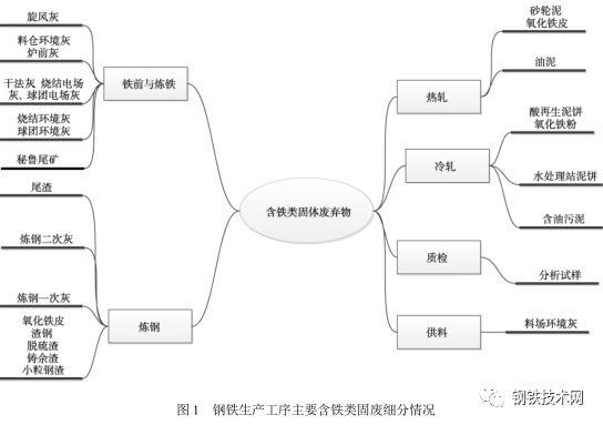 鋼鐵工業(yè)是國(guó)民經(jīng)濟(jì)的基礎(chǔ)產(chǎn)業(yè),也是高消耗、高排放行業(yè),整個(gè)產(chǎn)業(yè)鏈最大排放是鋼鐵生產(chǎn)過程產(chǎn)生的固體廢棄物。2015 年,我國(guó)粗鋼產(chǎn)量 8.04 億噸,以每噸鋼產(chǎn)生固體廢棄物 600~800kg 估算,全年共產(chǎn)生固體廢棄物 4.8 億~6.4 億噸,主要構(gòu)成為冶煉過程形成的爐渣、含鐵塵泥、燒結(jié)脫硫產(chǎn)物等,僅冶金渣就超過 2 億噸 [1] 。固體廢棄物占用大量的土地資源,污染周邊環(huán)境,為此,提高鋼鐵流程固體廢棄物資源化高附加值利用是鋼鐵企業(yè)必須解決的重大問題。