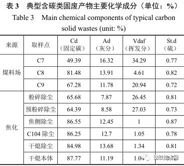 表 3 是典型含碳類固體廢棄物主要化學(xué)成分,碳含量較高,適合回收利用。