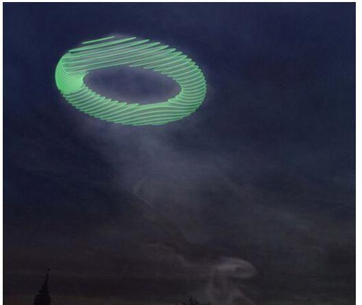每當(dāng)有一噸化石燃料產(chǎn)生的二氧化碳排放到空氣,煙囪會形成一個直徑30米的煙圈,到了晚上也會有激光投射反應(yīng),提醒人們注意環(huán)保。