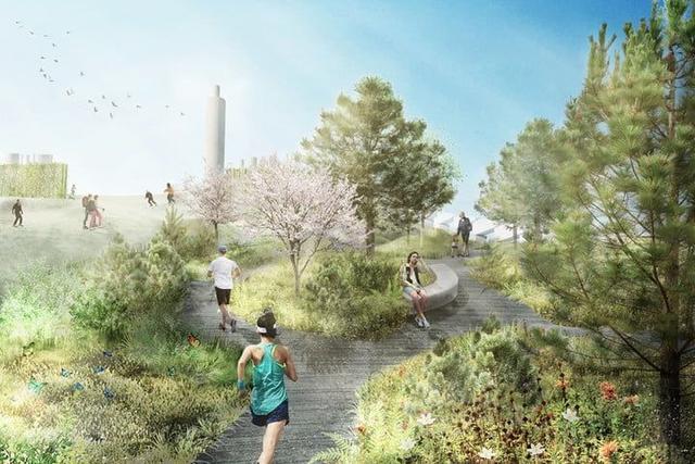 此次滑雪場公園設(shè)計也基本出爐,發(fā)電廠屋頂斜坡有88米高,設(shè)置了3條滑雪道,總長度超過1500米,還設(shè)了180米速滑挑戰(zhàn),最陡的地方足有45°。