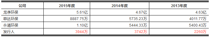 再看看發(fā)行人的盈利水平,2013、2014、2015年度分別為2260萬、3742萬、3944萬,對比同行業(yè)上市公司龍凈環(huán)保、菲達(dá)環(huán)保、永清環(huán)保同時期的凈利潤水平,發(fā)行人明顯偏小,因此調(diào)節(jié)銷售費用的質(zhì)疑就不難理解了。