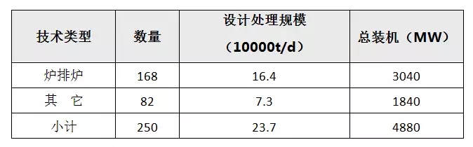 根據(jù)中國(guó)環(huán)聯(lián)研究院數(shù)據(jù)統(tǒng)計(jì),截至2016年年底,投入運(yùn)行的生活垃圾焚燒發(fā)電廠有250座,總處理能力為23.7萬噸/日,總裝機(jī)約為4880MW。其中采用爐排爐的焚燒發(fā)電廠有168座,合計(jì)處理能力達(dá)到16.4萬噸/日,裝機(jī)達(dá)到3040MW;其余主要為采用流化床的焚燒發(fā)電廠,總計(jì)有82座,合計(jì)處理能力為7.3萬噸/日,裝機(jī)達(dá)到1840MW。