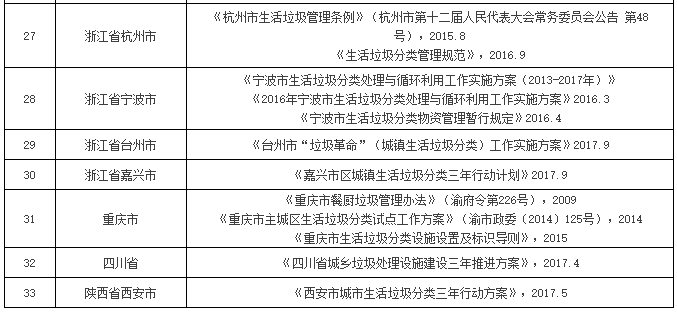 附:地方生活垃圾分類政策一覽