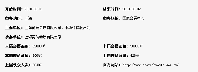 2018年第四屆上海國際固廢氣展將于2018年5月31日-6月2日在國家會展中心(上海)舉行,展覽面積將達(dá)到32,000平方米,來自全球的參展商將達(dá)到500+家,高效邀約優(yōu)質(zhì)參觀團(tuán)100+個,專業(yè)觀眾35,000+位。