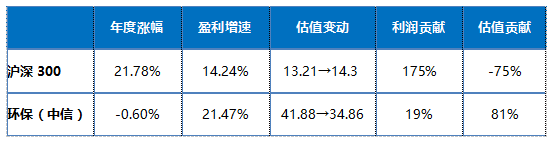 從驅(qū)動因素看,滬深300主要利潤增長貢獻(xiàn)、環(huán)保屬于去估值過程。