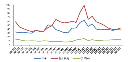 環(huán)保、創(chuàng)業(yè)板、滬深300歷史估值走勢對比