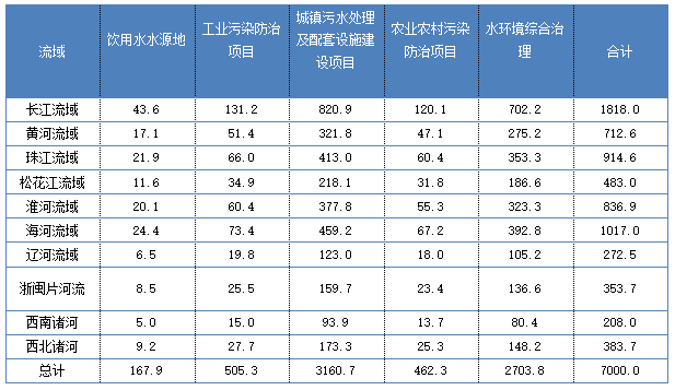 “十三五”重點流域骨干工程項目投資匡算(億元)