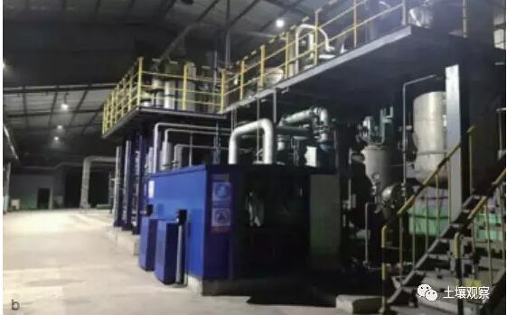 對生物質(zhì)炭的深入研究催生了生物質(zhì)廢棄物炭化與生物質(zhì)炭農(nóng)業(yè)應(yīng)用的有機(jī)結(jié)合,初步形成了以熱裂解為基礎(chǔ)的生物質(zhì)工程與產(chǎn)業(yè)。2017年4月,農(nóng)業(yè)部將秸稈炭化還田列為全國秸稈資源化綜合利用的十大模式之一。2017年8月,秸稈工業(yè)化生產(chǎn)與炭基肥生態(tài)農(nóng)業(yè)技術(shù)通過鑒定,被環(huán)保企業(yè)作為產(chǎn)業(yè)技術(shù)轉(zhuǎn)化而商業(yè)化推廣。2017年11月底,國家能源局和環(huán)保部發(fā)布通知,明確支持生物質(zhì)炭化和炭基肥生產(chǎn)作為煤電生物質(zhì)能源耦合聯(lián)產(chǎn)的新模式。秸稈年處理量1.5萬噸,生物質(zhì)炭年產(chǎn)5000 噸,生物質(zhì)炭基肥年產(chǎn)2萬噸的生產(chǎn)系統(tǒng)已經(jīng)投入運(yùn)行并快速商業(yè)化推廣(圖 3)。這一套生產(chǎn)系統(tǒng)與多種形式的秸稈收儲運(yùn)系統(tǒng)結(jié)合后可以形成秸稈年處理量1000萬噸,生產(chǎn)生物質(zhì)炭 350萬噸,炭基肥1200多萬噸的新型生物質(zhì)炭基產(chǎn)業(yè),其產(chǎn)值將達(dá)到300—400億元。這一套集廢棄物處理、能源利用與肥料生產(chǎn)為一體的系統(tǒng)形成了一個巨大產(chǎn)業(yè)集群,將成為農(nóng)業(yè)源實(shí)體經(jīng)濟(jì)的新增長點(diǎn),也提出了科技、工程、管理和金融融合服務(wù)的新需求。