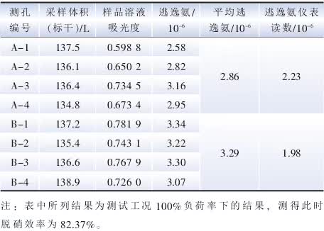 為便于測試結(jié)果與電廠儀表數(shù)據(jù)的比對,試驗(yàn)所測逃逸氨濃度按10-6計(jì)量給出,其轉(zhuǎn)化系數(shù)為22.4/17。