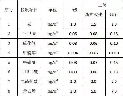 卸料大廳采用離子氧送風(fēng)除臭系統(tǒng),垃圾池間采用化學(xué)洗滌除臭系統(tǒng),廠界惡臭污染物執(zhí)行《惡臭污染物排放標(biāo)準(zhǔn)》(GB14554-1993)中的二級新建項目標(biāo)準(zhǔn)限值。惡臭無組織排放執(zhí)行以下標(biāo)準(zhǔn):