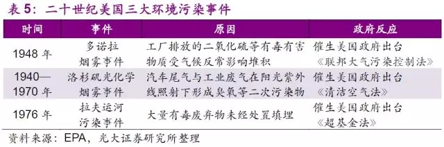 環(huán)保治理的投資隨著時間累積日益增長,發(fā)達國家的政府已逐步意識到“先污染后治理”的成本要遠高于一開始就以“對環(huán)境負責”的態(tài)度處置廢物。經歷過1948年的多諾拉SO2污染、1940—70年間的洛杉磯光化學污染、以及1976年的拉夫運河廢物污染等事件后,公眾對環(huán)境治理的呼聲達到了頂峰。美國政府在出臺相應法律法規(guī)規(guī)范環(huán)保行為時,對環(huán)保處置設施的要求也在不斷的提升中。