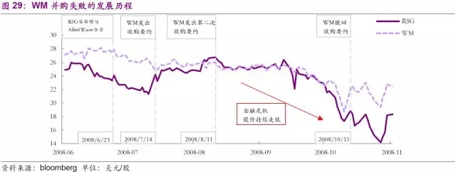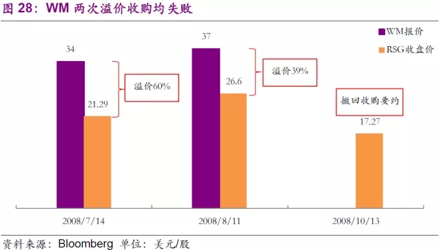 公司的收購之路也并不是一帆風順,公司曾在2008年兩次試圖收購當時全美第二大固廢公司的Republic Services(以下簡稱RSG)未果,并在當年10月宣稱因金融危機而放棄收購意圖。