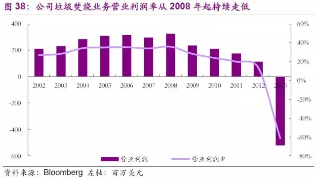 一步分析,Wheelabrator營業(yè)收入走低的核心因素是垃圾焚燒發(fā)電上網電價的持續(xù)下跌。再加上Wheelabrator原來簽訂的數個高于現上網電價的長期合同到期,需要按現行電價重新續(xù)簽,公司認為Wheelabrator已無法為公司提供穩(wěn)定的收益,并在2013年確認了高達4.83億美元的商譽減值,隨后于2014年宣布剝離Wheelabrator的全部業(yè)務。
