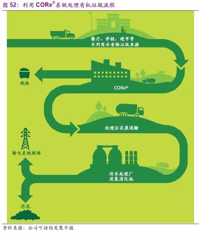 公司還在傳統(tǒng)堆肥處理有機垃圾的基礎上進行了新技術的研發(fā)。公司在2013年新研發(fā)的有機廢物集中回收系統(tǒng)(CORe®),通過對商業(yè)食物垃圾的處理,制成泥漿后送至污水處理廠的厭氧消化池,可以提升多達70%的厭氧消化的能量產生量。公司在2015年已有3家處理廠使用CORe®系統(tǒng)處理8000噸的商業(yè)食物垃圾,未來仍有擴張計劃。