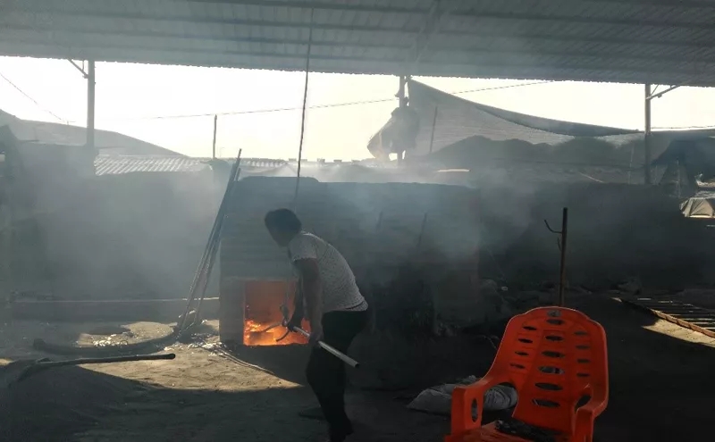 一是生產(chǎn)工藝設(shè)備十分簡陋。督察組抽查了恒豐冶煉廠、欽州強(qiáng)勁冶煉廠、311省道旁無名鐵合金廠、黃屋屯鎮(zhèn)大橋礦品廠等4家鐵合金冶煉廠,企業(yè)以錳礦為原料生產(chǎn)富錳渣和生鐵,其主要生產(chǎn)裝備設(shè)施均為國家明令淘汰的小高爐,其中3家鐵合金廠小高爐僅有13立方米。廠區(qū)基本沒有像樣的廠房及相關(guān)附屬設(shè)施,更無有效的生產(chǎn)控制設(shè)施和人工防護(hù)裝備,露天生產(chǎn),工藝粗放。