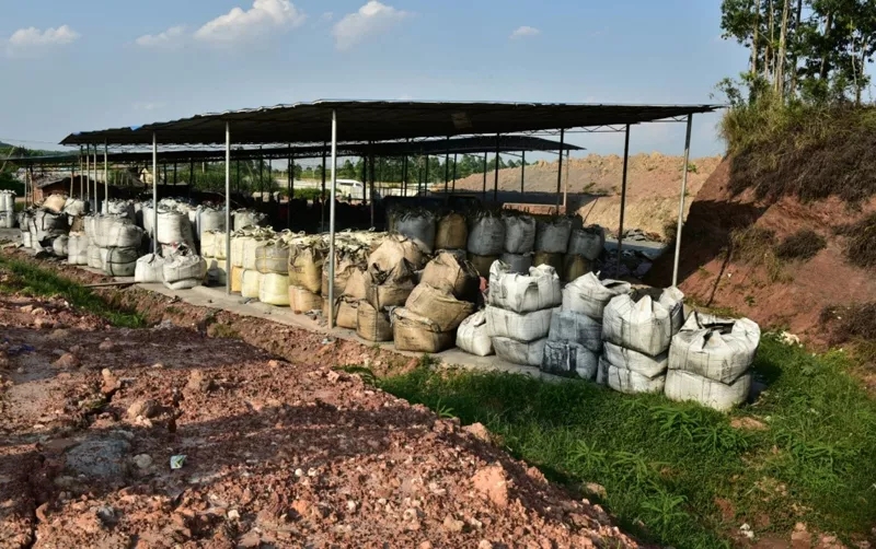 村內(nèi)堆放工業(yè)廢棄物的大坑堆滿各種生產(chǎn)廢料