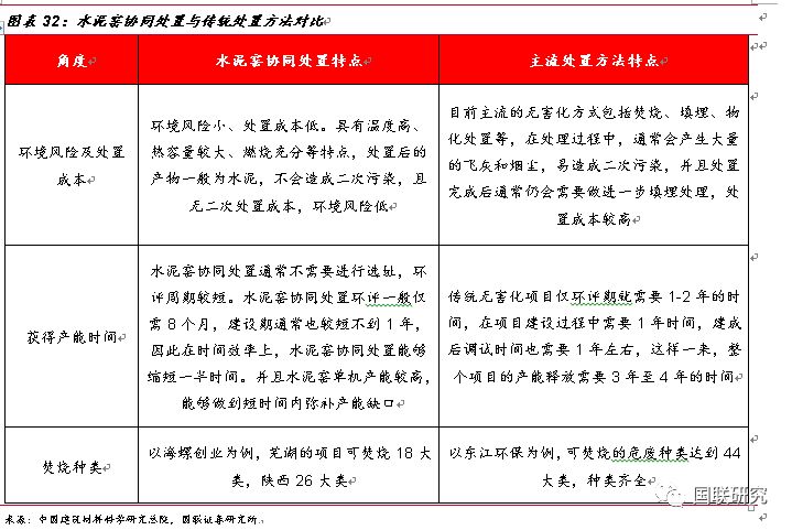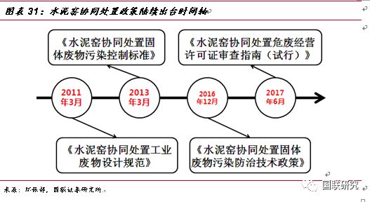 水泥窯協(xié)同處置—危廢無害化處置的有益補(bǔ)充。政策刺激下,水泥窯協(xié)同處置危廢應(yīng)運(yùn)而生。2011年3月,《水泥窯協(xié)同處置工業(yè)廢物設(shè)計(jì)規(guī)范》正式出臺(tái),文件對(duì)工業(yè)廢物處置規(guī)模、技術(shù)等進(jìn)行了詳細(xì)要求,標(biāo)志著對(duì)水泥窯協(xié)同處置政策成熟化的開端。2013年兩高司法提出非法排放、傾倒、處理3噸以上的危廢入刑,從法律層面上對(duì)危廢的排放進(jìn)行了強(qiáng)有力的監(jiān)管,同年3月,《水泥窯協(xié)同處置固體廢物污染控制標(biāo)準(zhǔn)》出臺(tái),規(guī)定了污染排放限值、水泥窯設(shè)施技術(shù)要求以及入窯廢物的特性要求,作為水泥窯協(xié)同處置領(lǐng)域規(guī)范性文件推動(dòng)了行業(yè)的持續(xù)發(fā)展。2016年12月,《水泥窯協(xié)同處置固體廢物污染防治技術(shù)政策》出臺(tái),文中明確了協(xié)同處置固廢應(yīng)利用現(xiàn)有新型干法水泥窯,采用窯磨一體化的運(yùn)行方式進(jìn)行運(yùn)作,政策發(fā)布之后,新建、改建或擴(kuò)建處置危險(xiǎn)廢物的水泥企業(yè),應(yīng)按照要求選擇單線設(shè)計(jì)熟料生產(chǎn)規(guī)模 4000噸/日及以上水泥窯。2017年6月,《水泥窯協(xié)同處置危廢經(jīng)營(yíng)許可證審查指南(試行)》出臺(tái),對(duì)水泥窯協(xié)同處置危廢的適用范圍、術(shù)語定義、經(jīng)營(yíng)模式及技術(shù)規(guī)范等方面進(jìn)行了詳細(xì)規(guī)定,并將協(xié)同處置的新型干法水泥窯熟料產(chǎn)能的標(biāo)準(zhǔn)重新進(jìn)行了修訂,由之前4000噸/日調(diào)整下降到2000噸/日,進(jìn)一步擴(kuò)大了產(chǎn)能空間。