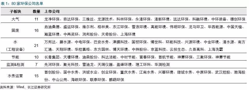 環(huán)保板塊上市公司2018年中報(bào)均已披露完畢,我們選取80家公司,包括大氣(11家)、固廢(16家)、水(工程設(shè)備,21)、節(jié)能(10家)、監(jiān)測&檢測(7家)和水務(wù)運(yùn)營(15家)六個細(xì)分板塊進(jìn)行分析。