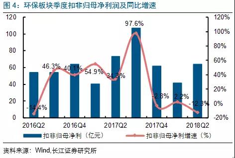 3)水(工程設(shè)備)板塊:今年以來民企融資難度加大,作為PPP屬性較強(qiáng)的板塊,融資難成為該行業(yè)企業(yè)發(fā)展的最大障礙,以東方園林為代表的龍頭企業(yè)也出現(xiàn)類似問題,該板塊2018Q2營收及歸母凈利潤出現(xiàn)大幅下滑。