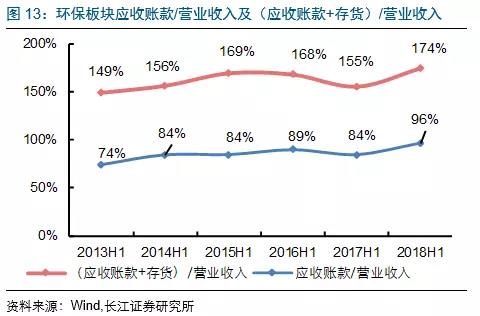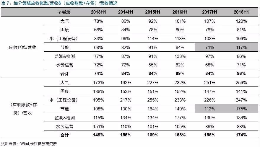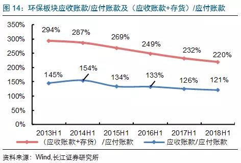 2018H1固廢板塊經(jīng)營活動產(chǎn)生現(xiàn)金流凈額改善較多,主要受益于中再資環(huán)(補(bǔ)貼款回款增加,由-5.5億到3.2億)、東江環(huán)保(議價(jià)能力提升,回款加速,同時預(yù)收款增加較快,由0.9億到3億)、格林美(由1億到4.2億)經(jīng)營現(xiàn)金流凈額改善明顯;節(jié)能板塊下滑較大主要受到三聚環(huán)保(-20.4億到-32.3億)、神霧環(huán)保(由0.7億到-3.9億)、神霧節(jié)能(由3.4億到-0.8億)經(jīng)營現(xiàn)金流凈額惡化較快的影響。水(工程設(shè)備)板塊經(jīng)營活動現(xiàn)金流凈額繼續(xù)走低,主要受到碧水源(由-7億到-13.6億)及天翔環(huán)境(由0.5億到-9.7億)的影響。
