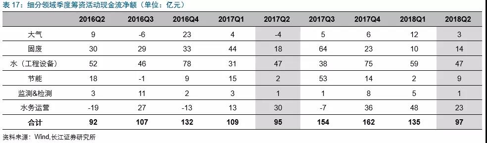 2018Q2水務(wù)運(yùn)營板塊籌資活動現(xiàn)金流凈額同比減少7億,主要是首創(chuàng)環(huán)境融資活動現(xiàn)金流凈額同比減少約14億(由37億到23億)。