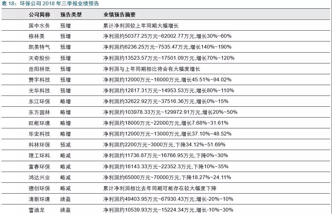 截至9月2日,已有30個環(huán)保公司公布三季度業(yè)績預(yù)告,其中預(yù)增或略增的有11家,略減或續(xù)盈的有10家,虧損的有9家,業(yè)績增速下滑或虧損公司比例較多。受宏觀融資環(huán)境和環(huán)保監(jiān)管環(huán)境趨嚴(yán)影響,部分龍頭企業(yè)業(yè)績增速不理想,三季度需關(guān)注信貸政策邊際變化和公司項(xiàng)目/訂單落地進(jìn)度。