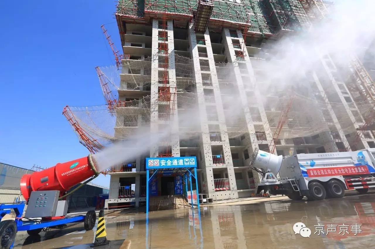 2016年,北京朝陽區(qū)用抑塵射霧器治理工地?fù)P塵,這個(gè)多功能抑塵射霧器是“藍(lán)天計(jì)劃”引入的新技術(shù)之一。攝影人民日報(bào)記者王昊男