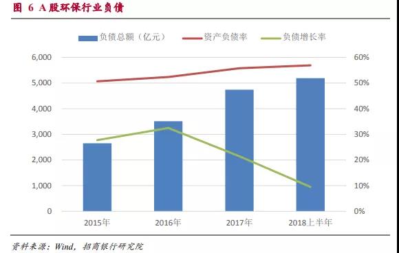 近年來A股環(huán)保行業(yè)應收賬款增速一直維持在30%及以上的增速,因此盡管環(huán)保行業(yè)整體的資產負債率水平還相對可控,但短期流動性的風險是需要重點關注的方面。