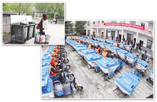 左上圖 居民的垃圾分類意識(shí)還有待提高。圖為北京市豐臺(tái)區(qū)某小區(qū)居民將沒(méi)有分類的垃圾投入分類垃圾箱。本報(bào)記者 熊 麗攝