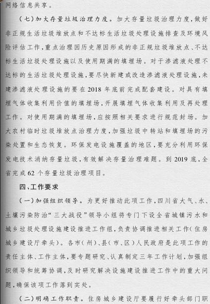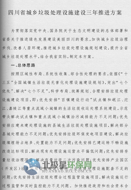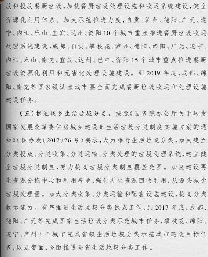 四川省政府印發(fā)了《四川省城鄉(xiāng)垃圾處理設(shè)施建設(shè)三年推進方案》(以下簡稱《方案》)?!斗桨浮诽岢?,到2019年底,我省生活垃圾無害化處理能力將達7.05萬噸/日,生活垃圾處理設(shè)施累計投資力爭完成361億元,普遍建立生活垃圾分類制度,形成完善的生活垃圾處理信息化監(jiān)管體系。