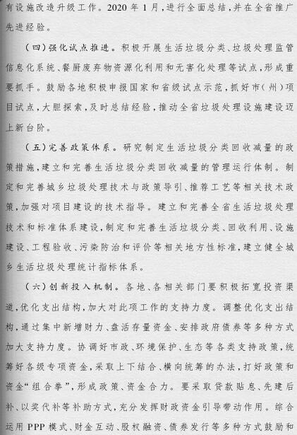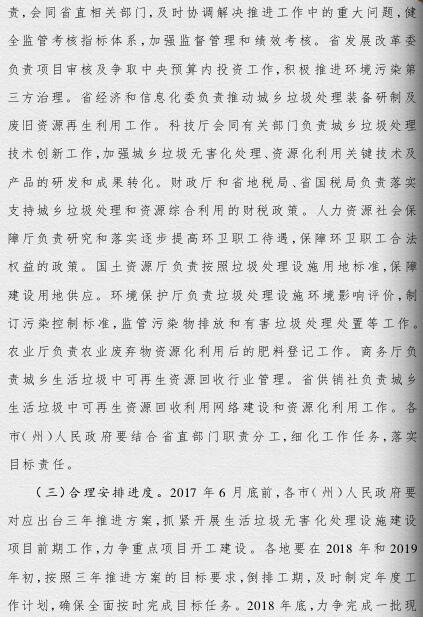 《方案》提出,要根據(jù)人口聚集程度、自然地理條件、經(jīng)濟發(fā)展水平等情況統(tǒng)籌規(guī)劃布局垃圾處理設(shè)施建設(shè);要補齊垃圾處理設(shè)施建設(shè)短板,到2019年底,新建生活垃圾無害化處理設(shè)施76座,完成無害化處理設(shè)施改擴建43個和存量垃圾治理項目62個。