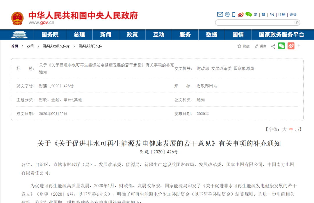 文章導(dǎo)讀為促進(jìn)可再生能源高質(zhì)量發(fā)展,2020年1月,財(cái)政部、發(fā)展改革委、國家能源局印發(fā)了《關(guān)于促進(jìn)非水可再生能源發(fā)電健康發(fā)展的若干意見》(財(cái)建〔2020〕4號,以下簡稱4號文),明確了可再生能源電價(jià)附加補(bǔ)助資金(以下簡稱補(bǔ)貼資金)結(jié)算規(guī)則。為進(jìn)一步明確相關(guān)政策,穩(wěn)定行業(yè)預(yù)期,現(xiàn)將補(bǔ)貼資金有關(guān)事項(xiàng)補(bǔ)充...