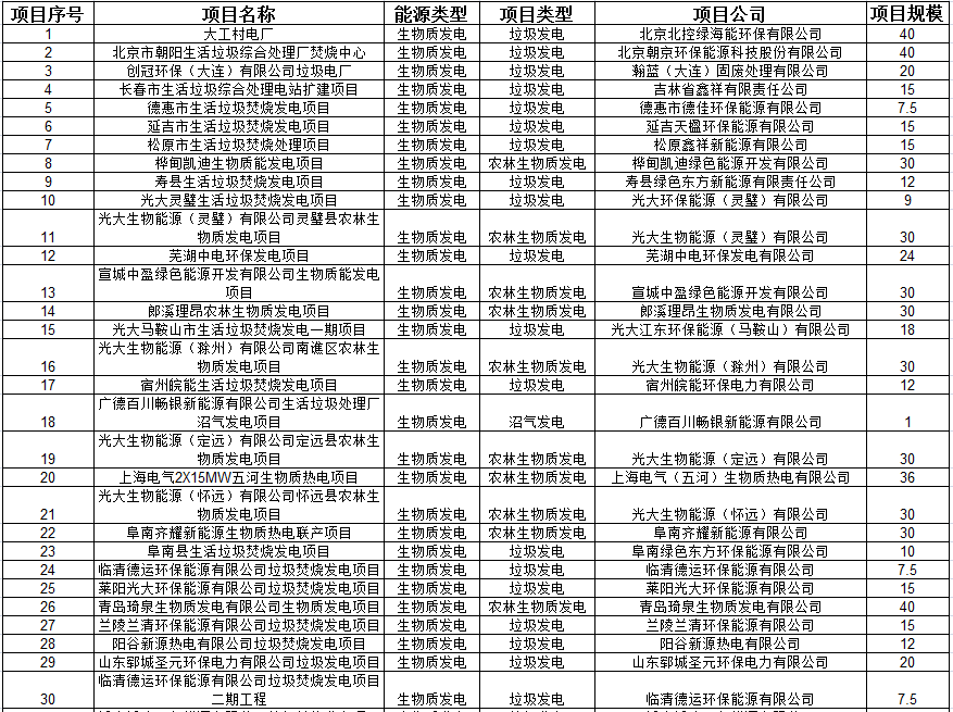 文章導(dǎo)讀10月30日,國家電網(wǎng)有限公司已將完成公示的第六批次可再生能源發(fā)電項(xiàng)目補(bǔ)貼項(xiàng)目清單上報(bào)國家主管部門,本次公布的2020年第六批可再生能源發(fā)電補(bǔ)貼項(xiàng)目清單中,生物質(zhì)發(fā)電項(xiàng)目總計(jì)85個(gè),其中垃圾焚燒發(fā)電項(xiàng)目52個(gè),沼氣發(fā)電項(xiàng)目8個(gè),農(nóng)林生物質(zhì)發(fā)電項(xiàng)目25個(gè),清單如下。(點(diǎn)擊圖片可放大查看)公告全...