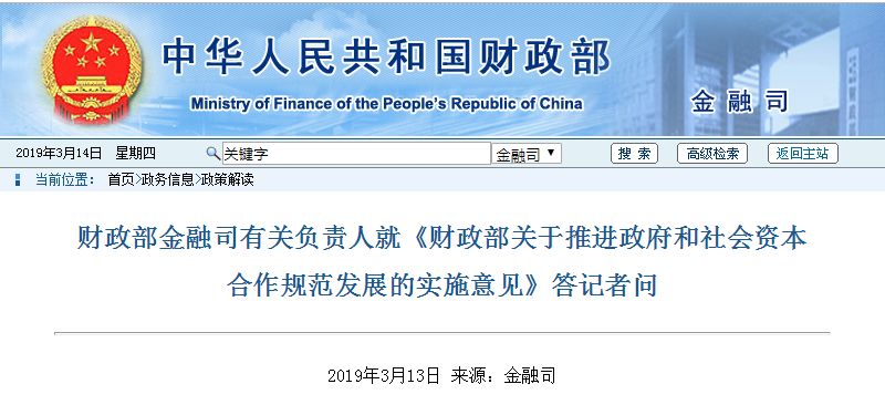 文章導(dǎo)讀近日,財(cái)政部印發(fā)《關(guān)于推進(jìn)政府和社會(huì)資本合作規(guī)范發(fā)展的實(shí)施意見》(以下簡(jiǎn)稱《實(shí)施意見》)。財(cái)政部金融司有關(guān)負(fù)責(zé)人就《實(shí)施意見》有關(guān)情況回答了記者的提問(wèn)。來(lái)源:財(cái)政部問(wèn):請(qǐng)介紹一下出臺(tái)《實(shí)施意見》的背景和主要目的?答:推廣政府和社會(huì)資本合作(PPP)模式,引導(dǎo)社會(huì)資本參與公共服務(wù)供給,是黨中央...
