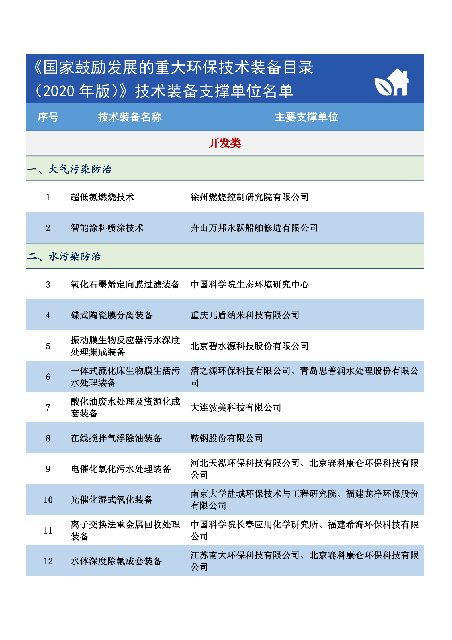 2020年12月25日,工業(yè)和信息化部、科學(xué)技術(shù)部、生態(tài)環(huán)境部聯(lián)合制定的《國家鼓勵(lì)發(fā)展的重大環(huán)保技術(shù)裝備目錄(2020年版)》經(jīng)過征意后正式公告。 與征求意見稿相比,公示稿由165項(xiàng)變?yōu)榱?62項(xiàng)。中華人民共和國工業(yè)和信息化部 科學(xué)技術(shù)部 生態(tài)環(huán)境部公告2020年第52號 為加快先進(jìn)環(huán)保裝備研發(fā)和應(yīng)...