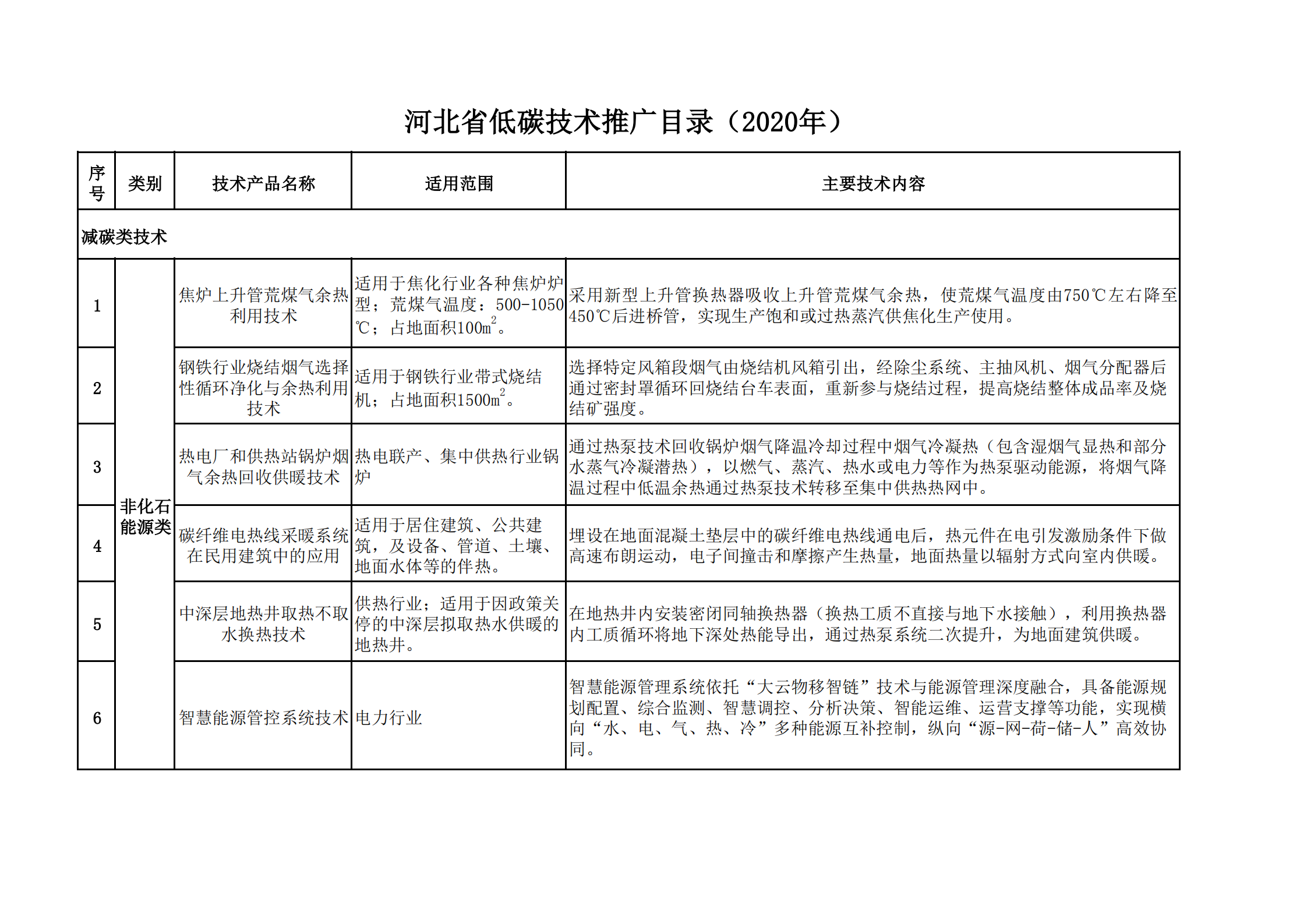 為貫徹落實(shí)《河北省應(yīng)對氣候變化“十三五”規(guī)劃》《河北省“十三五”控制溫室氣體排放工作實(shí)施方案》相關(guān)要求,加快我省低碳技術(shù)的推廣應(yīng)用,進(jìn)一步減少溫室氣體排放,促進(jìn)我省控制溫室氣體排放行動(dòng)目標(biāo)實(shí)現(xiàn),我廳組織編制了《河北省低碳技術(shù)推廣目錄(2020年)》,現(xiàn)...