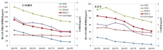 北京市 北京市第一季度PM2.5累計濃度為52微克/立方米,同比持平;可吸入顆粒物(PM10)、二氧化硫(SO2)、二氧化氮(NO2)累計濃度均同比下降20%以上;累計優(yōu)良天數(shù)為74天,同比增加10天,累計空氣重污染天數(shù)為7天。 2019年10月-2020年3月秋冬季攻堅期間,PM2.5平均濃度為4...