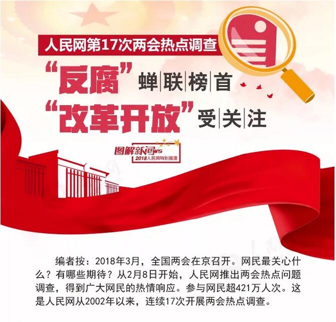 2018年3月,全國(guó)兩會(huì)將在北京召開(kāi),網(wǎng)民最關(guān)心什么?有哪些期待?而隨著的頻繁出臺(tái),人民對(duì)碧海藍(lán)天的渴望更加強(qiáng)烈,問(wèn)題也愈發(fā)引起人民的關(guān)注。人民網(wǎng)推出的兩會(huì)熱點(diǎn)調(diào)查中,“環(huán)境保護(hù)”進(jìn)入前十名榜單,成為備受關(guān)注的熱點(diǎn)問(wèn)題,而且其于2014-2018年五次上榜。 來(lái)源:人民網(wǎng)圖解新聞