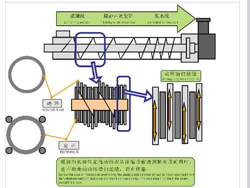 一、工作原理:的工作原理是由固定環(huán)和游動環(huán)的相互層疊,螺旋軸貫穿其中形成的過濾裝置推動。前端為濃縮部后端為脫水部。固定環(huán)和游動環(huán)之間形成的濾縫以及螺旋軸的螺距從濃縮部到脫水部逐漸變小。螺旋軸的旋轉(zhuǎn)在推動污泥從濃縮部到脫水部的同時,也不斷帶動游動環(huán)清掃濾縫,防止堵塞。污泥在濃縮不經(jīng)過重力濃縮后,被運(yùn)輸...