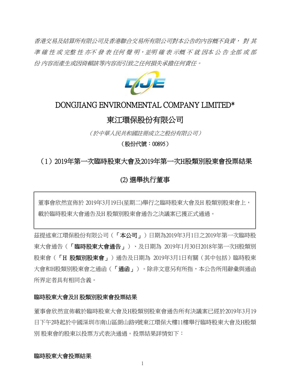 東江環(huán)保發(fā)布公告,于2019年3月19日舉行2019年第一次臨時股東大會上,選舉姚曙為公司第六屆董事會執(zhí)行董事,任期將自2019年第一次臨時股東大會審議通過之日起生效,至公司第六屆董事會任期屆滿。原標題:東江環(huán)保(00895)選舉姚曙為執(zhí)行懂事