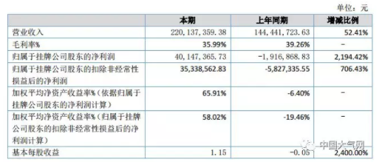 導語:泰欣環(huán)境于4月3日發(fā)布2018年度年報,報告顯示,泰欣環(huán)境在報告期內(nèi)實現(xiàn)營業(yè)收入 2.2億元,較上年同期增長 52.41%;凈利潤為 4014.7 萬元,比上年同期增長 2,194.42%。 報告期末,泰欣環(huán)境凈資產(chǎn) 8276.1萬元,較上年期末增長102.65%;總資 產(chǎn) 5.4億元,較上年...