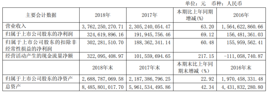 2019年3月20日,瀚藍環(huán)境股份有限公司發(fā)布2018年年度報告。 全年實現(xiàn)營業(yè)收入48.48億元,同比增長15.38%%,歸母凈利潤8.76億元,同比增長34.23%,扣非后歸母凈利潤7.22億元,同比增長21.51%。2018年實現(xiàn)EPS為1.14元,同比增長34.12%。 公司第九屆董事會第十...