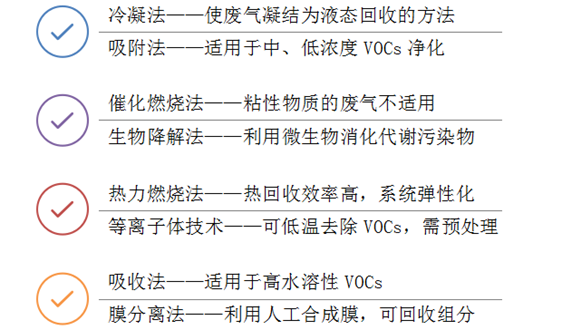 在VOCs治理領(lǐng)域,公認的手段包括源頭削減、過程控制和末端治理等三個環(huán)節(jié)。從目前我國VOCs治理的進程來看,減排工藝對科技創(chuàng)新要求較高,過程控制和末端治理相比更偏向末端治理環(huán)節(jié),這也直接帶動了VOCs處理設(shè)備市場的繁榮。 目前的主流工藝: 按照市場應用情況來看,吸附法、催化燃燒法占比都比較高,同時生...